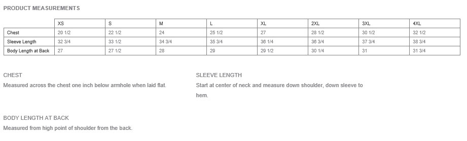 Add $2.50 for 2X-Large; Add $3.50 for 3X-Large; Add $4.50 for 4X-Large;